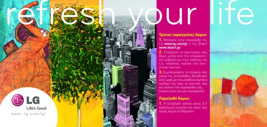 Ειδικότερα, στο πλαίσιο της προωθητικής ενέργειας που είναι σε εξέλιξη και θα διαρκέσει έως το τέλος Απριλίου, όσοι καταναλωτές επιλέξουν κλιματιστικό LG Art Cool Gallery, θα λάβουν ως δώρο τον «πίνακα» της προτίμησής τους – ενδεικτικής αξίας 100 ευρώ- μέσα από την αποκλειστική συλλογή Bizart Galleries που δημιουργήθηκε για τους πελάτες της LG.