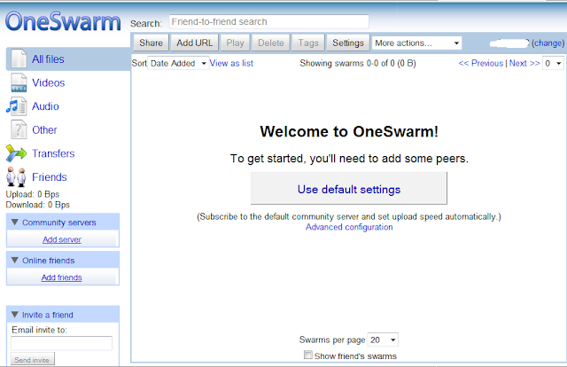 To OneSwarm Διαθέτει δύο τρόπους λειτουργίας μέσω browser ή σαν ξεχωριστή εφαρμογή μπορείτε να επιλέξετε όποιον από τους δύο τρόπους σας εξυπηρετεί καλύτερα