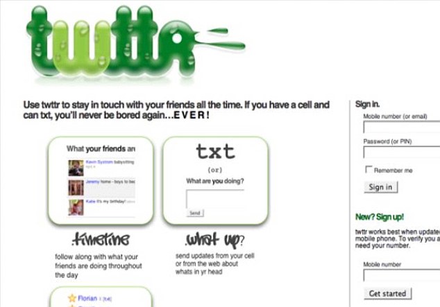 Η ιστοσελίδα του Twitter, πίσω στο 2005, με το παράξενο πράσινο λογότυπο «Twttr» και το λευκό φόντο, απέχει κατά πολύ από τις σημερινές εξελιγμένες μπλε αποχρώσεις και το χαρακτηριστικό έμβλημα του πτηνού.